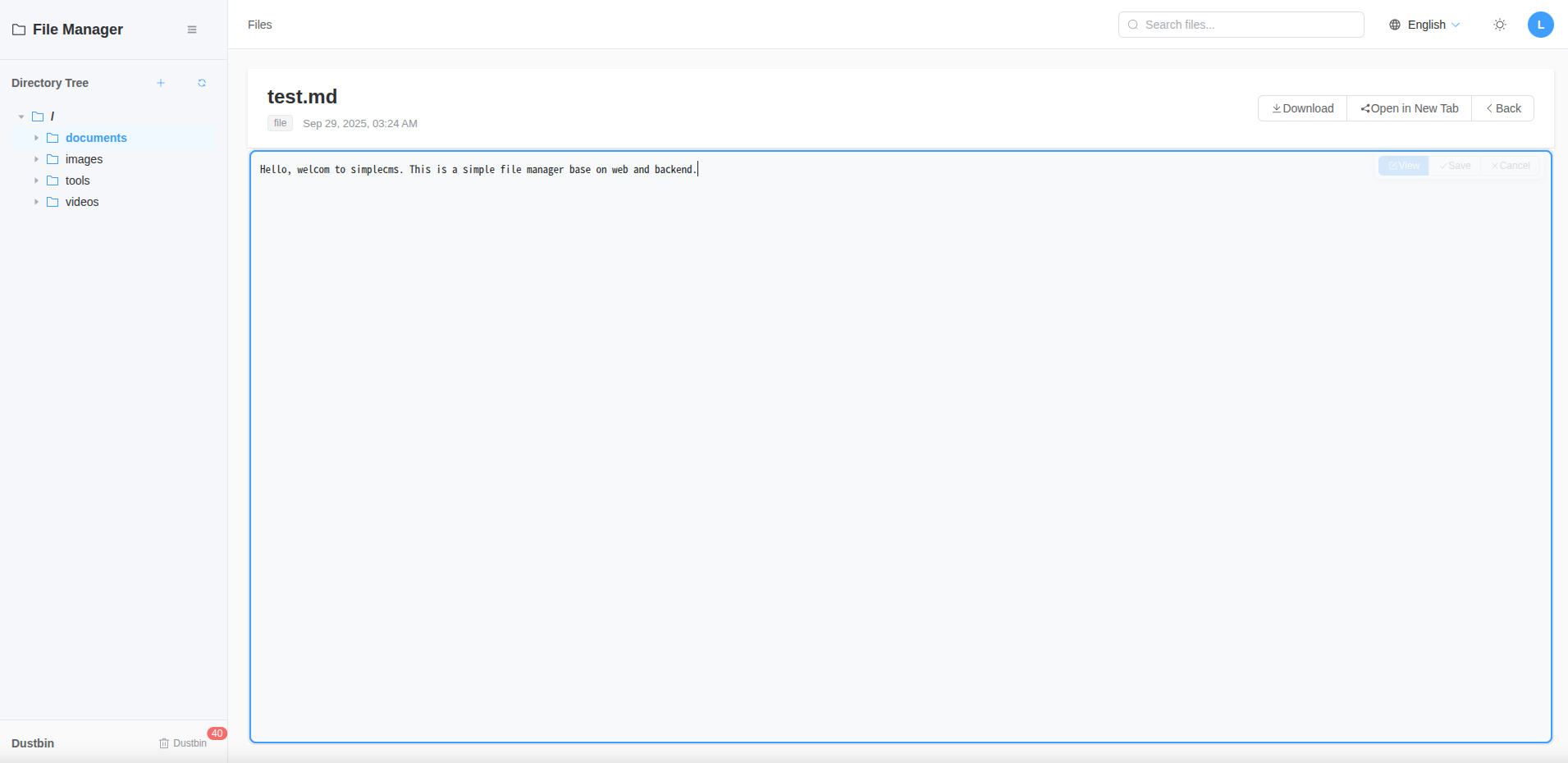 - Preview: Here are some screenshots of the SimpleCMS interface: